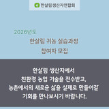 - 공지 전국공지 [연장공고]2026년도 한살림 '귀농 실습과정' 참여자 모집 안내 본 공고는 보다 많은 예비 귀농·귀촌인의 참여 기회를 확대하기 위해 모집기간을 연장하여 추가 모집을 진행합니다. 기존 신청자의 경우 별도의 재신청 없이 기존 접수가 그...